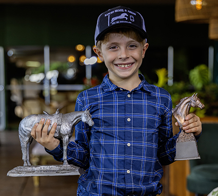 “Eu comecei a gostar do Quarto de Milha quando vim de Curitiba pra Foz do Iguaçu e minha mãe (Sinara) me colocou numa escolinha de treinamento com cavalo. Acho o Quarto de Milha muito bonito, mansinho e corre bastante! Meus pais me falaram que ia ter o Congresso e eu fiquei muito animado”, pontuou Guilherme. Sobre a preparação para o evento, foi taxativo: “Fiquei treinando e me concentrando para vir pra cá participar do Congresso pela primeira vez”.