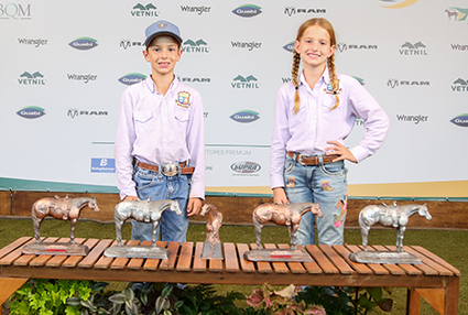 A seguir, os irmãos Morelato Borghette: Maria Antônia, com 8 anos, e José Roberto, de 7 anos, moradores em Marília (SP), e alunos da Escola do Cavalo, em Pompeia (SP), também participantes das Seis Balizas, ambos com cavalos castrados. Ela foi 3ª colocada, tanto na Principiante (Mirim) quanto na Jovem A, além de ser 2º lugar nos Cinco Tambores na Jovem Principiante (13 anos ou menos) e na categoria animal Castrado, todas colocações montando Borys Dandy Dash (ZD King Dash x Ladd Dandy San LG, por Flit Dandy Doc). Já José Roberto foi 4º lugar correndo Seis Balizas na Jovem Principiante (Mirim) e nos Cinco Tambores na Jovem Principiante (13 anos ou menos), com Cassino Jac DD (Nice Jack x Crazy Dee Dr, por Poco Man Best), também com 19 anos de idade.