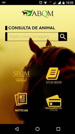 O aplicativo ABQM Mobile que já estava sendo amplamente elogiado pelos quartistas, agora está melhor ainda. Além de todos os benefícios já existentes, como: Emissão do Certificado de Cobertura; o SEQM onde o usuário pode acompanhar provas em andamento, rever as provas encerradas e também acompanha-las através de Transmissão Ao Vivo; Registros dos animais nos últimos 12 meses; Registros com pendências de documentação; Resultados das provas; Pagamentos Online; entre outros, a partir deste mês de fevereiro foi reestruturado para facilitar o acesso às novas opções de serviços.