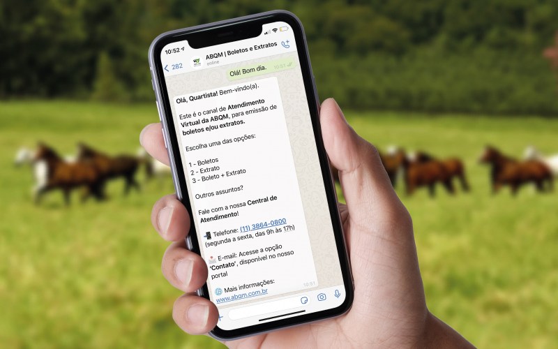 Adicione o número (11) 3879-7150 aos seus contatos e comece a usar o serviço. Siga as orientações da ferramenta, respondendo somente com os números e dados correspondentes à opção desejada. “A utilização inicial prevê apenas a emissão de boletos e extratos, de forma automatizada”, ressalta Vinícius Santos, gerente de Controladoria da ABQM. Quaisquer outras dúvidas deverão ser tratadas por telefone ou e-mail.