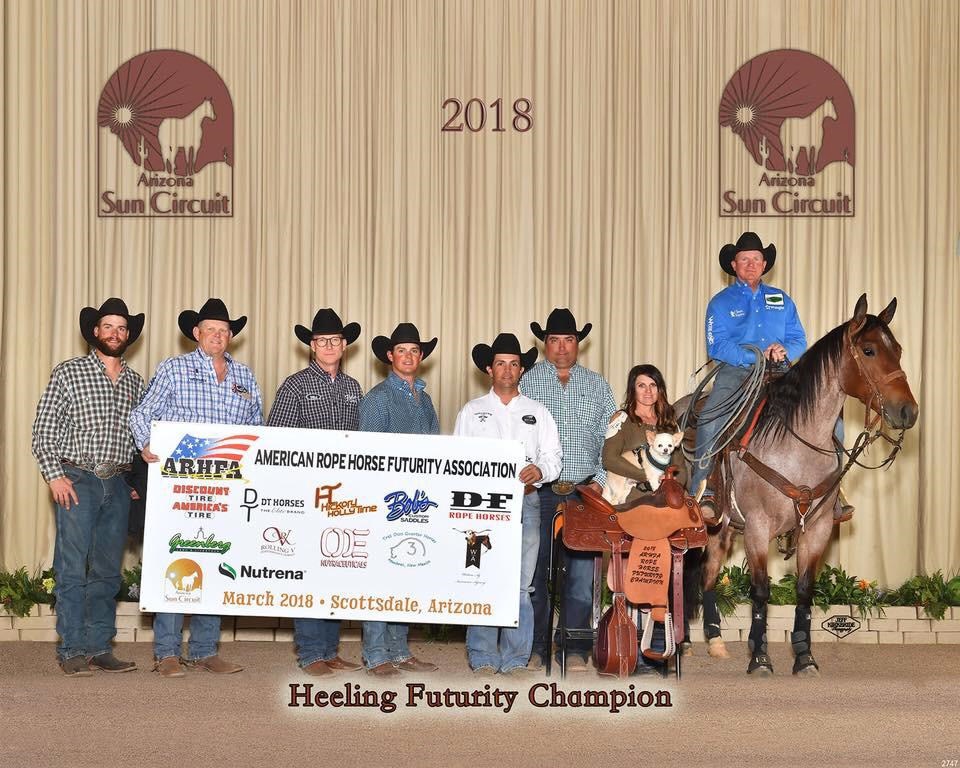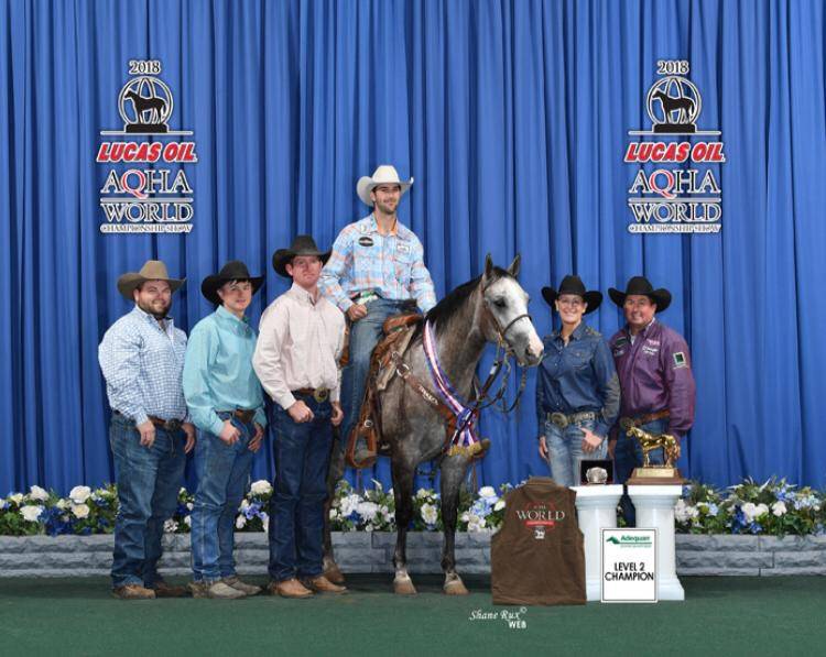 Em relação à prova de Laço Pé, somando 220 pontos, quem levou a melhor pela categoria Junior Aberta (Nível 2), foi a tordilha Dualing Sheree (Dual Pep x My Sweet Sheree, por Freckles Playboy), trabalhada por Dakota Jay Kirchenschlager e de propriedade do paranaense da cidade de Mandaguari, Marcos Peres. Segundo ele, Dualing foi adquirida com dois anos e, após consulta com alguns amigos nos EUA, a enviamos para treinar com o Clay Logan. “Foi uma grande surpresa para nossa família essa conquista, pois ela tem apenas três anos e meio de idade e havia participado de poucas provas antes do mundial, e entrou em pista enfrentando animais na faixa de seis anos”. Marcos disse ainda que o Clay Logan revelou que nunca havia treinado uma potra desta qualidade e a rotulou como: “Gray Heart” (coração tordilho).