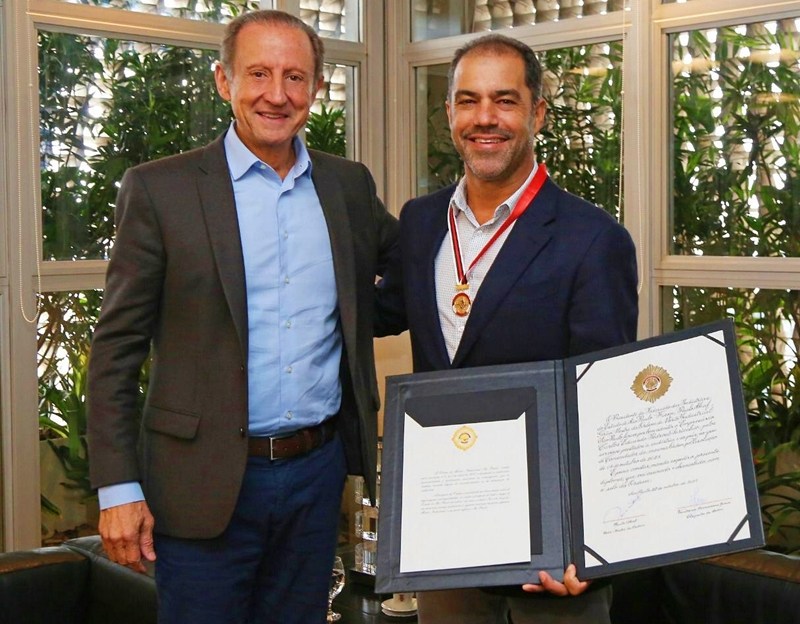 E toda essa garra, dedicação e empreendedorismo foram reconhecidos ontem (20/10), quando foi condecorado pela Ordem do Mérito Industrial como Comendador, pelos serviços prestados à indústria e ao país, em cerimônia simples, no edifício-sede da FIESP. A comenda foi entregue por Paulo Skaf, Grão Mestre da Ordem do Mérito Industrial e Presidente da Fiesp, Ciesp, Sesi, Senai e IRS.