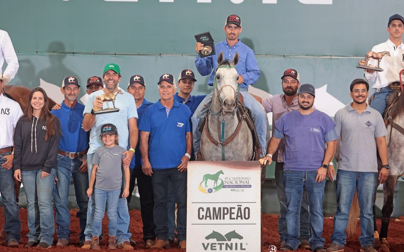 Na disputa final, com o tempo de 16s362, a dupla foi a mais rápida em pista, na categoria Aberta Sênior. O animal é de propriedade de Jorge Ismael de Biashi Filho e criação de Geraldo Alves Ferreira Filho.