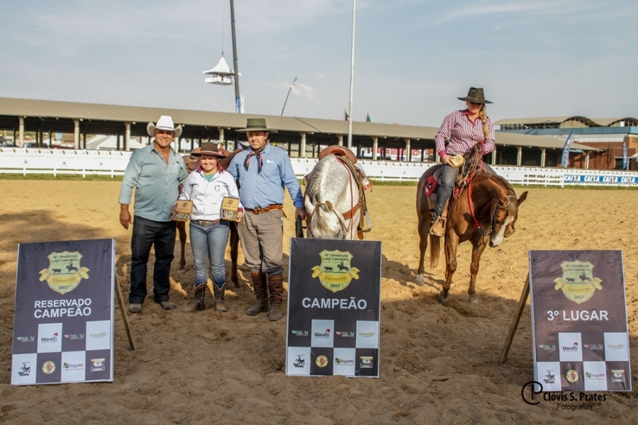Mais uma vez as mulheres vêm atraindo a atenção dos gaúchos nas provas do Laço Comprido e, pela Classe Amazonas (Feminino) – 13 anos ou mais, a jovem Eduarda da Silva Lima foi o grande destaque do 10º Congresso Brasileiro da ABQM, em Esteio (RS), obtendo por quatro anos seguidos o título de campeã. Desta vez, ela recebeu os aplausos duplamente. Competindo com o tordilho Play Nitro EMB, filho de Play At Second e Misty Playlena Had (Briganlena), ela obteve a nota 221 e ficou com a fivela de campeã, montando o animal pertencente a Ricardo Vasconcelos Araújo, da cidade de Santo Angelo (RS). Já repetiu o feito na segunda colocação com a égua Smart Little Play (Tasters Choice x Lenas Smart Playgirl), somando 215,5 pontos.