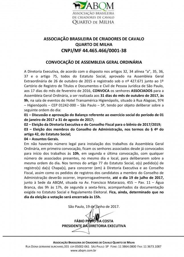 Faça parte da maior associação de Cavalos Quarto de Milha!