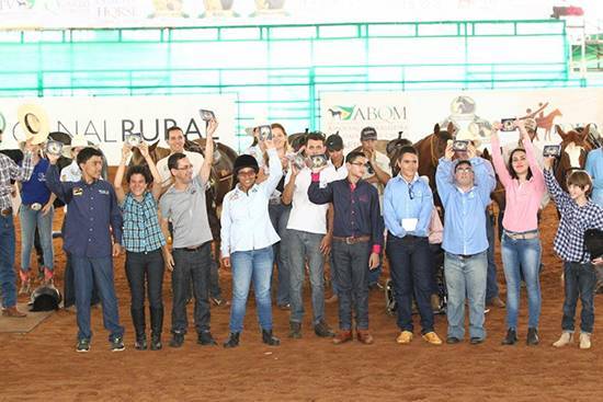 Comemoração dos competidores que receberam as fivelas de campeão Neste Potro do Futuro, a Equoterapia proporcionou momentos muito especiais a todos. Desde 2013 os eventos oficiais da ABQM vêm sendo brindados com a participação dos praticantes da Equoterapia, alunos de vários centros apoiados pela Associação. Os portadores de necessidades especiais se apresentam nas pistas do parque de exposições de Avaré, demonstrando suas habilidades como cavaleiros e comprovando os benefícios dessa prática na melhora da coordenação motora, na sociabilização e no desenvolvimento postural entre tantos outros aspectos. Os resultados do Projeto Equo ABQM têm sido extremamente satisfatórios graças ao empenho das coordenadoras Katarina Metzler, psicopedagoga e treinadora de equinos, e Adriana Moura, zootecnista e responsável pelo Departamento de Marketing da ABQM.