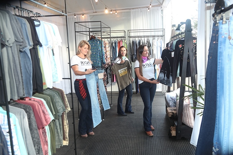 As catarinenses Ana Carolina Machado, Mariana Munhoz Machado e Daiane Munhoz Machado são representantes da Escaramuça, que desde 2014 está despontando com sucesso no mercado de moda country. Expositoras pela segunda vez consecutiva no evento, as empresárias afirmam que as expectativas em relação ao Congresso são muito positivas e, que desejam marcar presença em futuras edições da ABQM “Essa experiência é muito boa, desta forma conseguimos acompanhar cada vez mais as tendências e estilos”, declara Ana, mostrando as mercadorias mais vendidas da loja.
