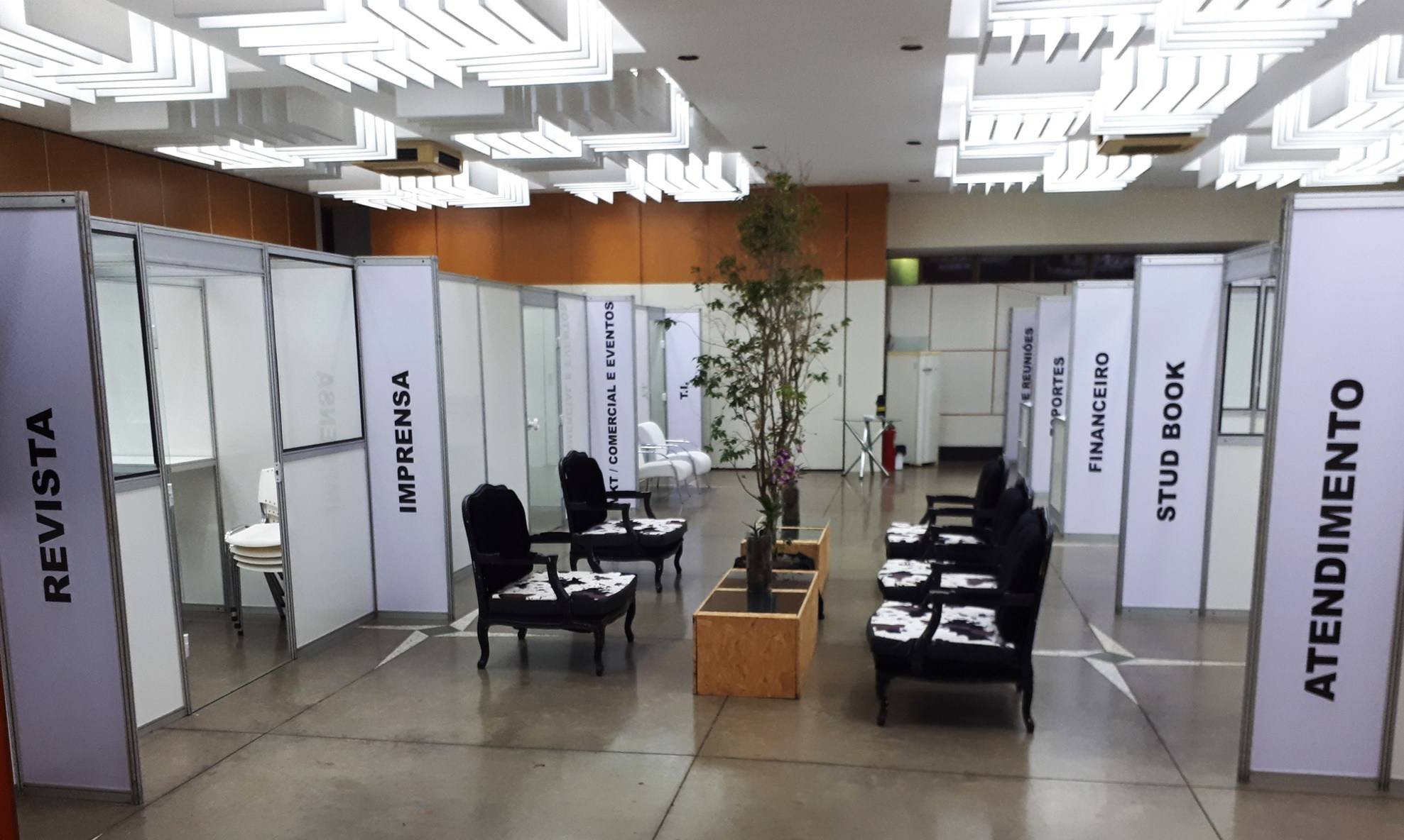 O público também encontrará no espaço: Revista, Marketing, Comercial e Eventos, Assessoria de Imprensa, Tecnologia da Informação, Financeiro e Sala de Reuniões da Diretoria.