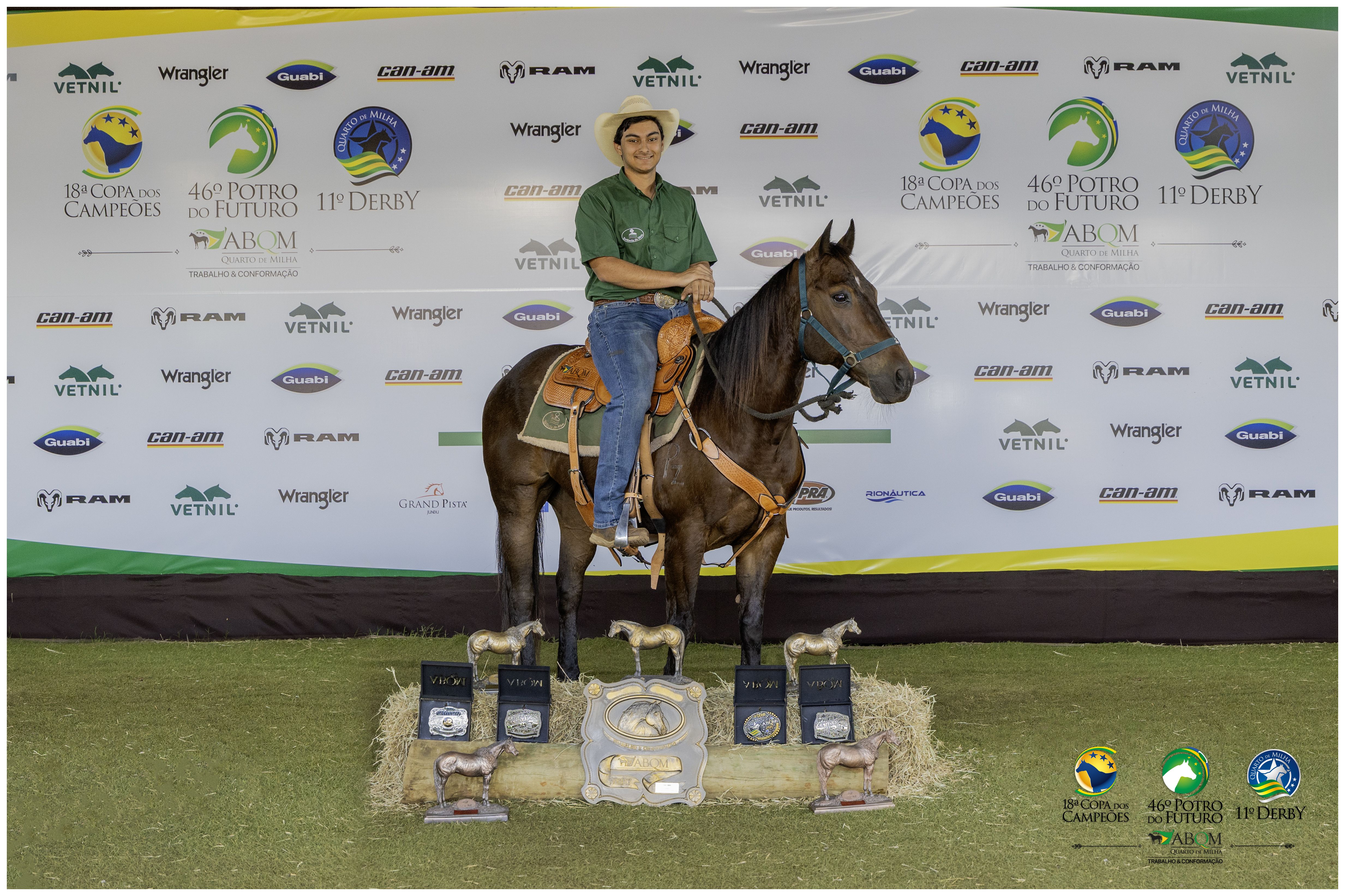 Ele montou em seu eterno parceiro, o castanho Yet Smart Full PZ, filho de Pepto Smart e Tinsel Gamay PZ (Doc’s Classic), somando desta vez 46 pontos competindo novamente nas provas de Laço Individual (Cronômetro e Técnico), Ranch Sorting e Team Penning. Animal pertencente à Estância da Mata, sendo criado por Paulo de Tarso Abdala Zeme.