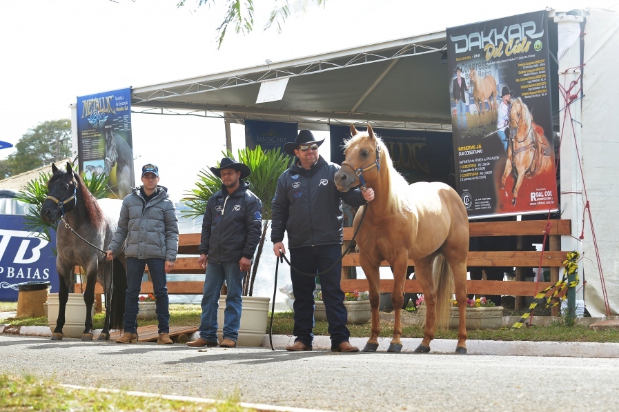 O professor Paulo Cunha aproveitou novamente o seu prestígio e montou, pela segunda vez durante o Campeonato Nacional da ABQM, uma galeria para seu cliente, Rodrigo Lopes Dal Col, proprietário do garanhão Dakkar Del Cielo, baio amarilho, filho de Peeko Del Cielo e Shine To Slydun 5T (Order Me A Shine). “A cobertura vai com garantia de nascimento de fêmea ou pelagem. Caso a produção seja de macho de outra cor, só apresentar o registro do produto, que terá direito a outra cobertura”, garante o proprietário. Os principais títulos do garanhão são os de campeão Nacional ABQM 2015, de Laço de Bezerro - Aberta Junior e de campeão na modalidade de Working Cow Horse na Aberta Junior, em 2014. Este ano, a galeria foi compartilhada com o garanhão rosilho Metallic Blue (Deep Clover Blue x The Rose Addition - Metalic Cat).