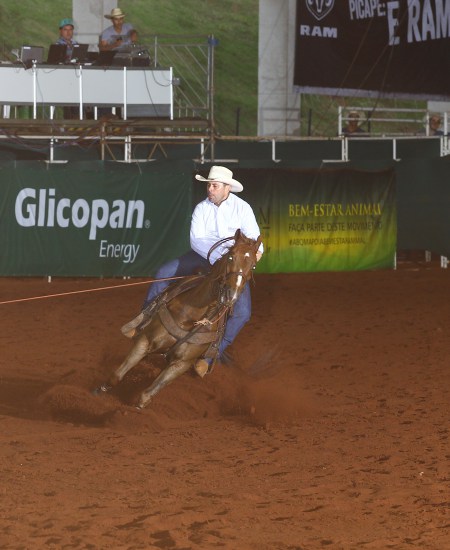 Laço Cabeça - Aberta - Senior (AQHA nota 73.500) ZAN DUN IT (PEAK DUN IT X VENTURE PI), com MARCELO RIZZI DA SILVA, proprietário OTÁVIO AUGUSTO BATTISTI NARDES e criador DIVANIR GIACOPINI.
