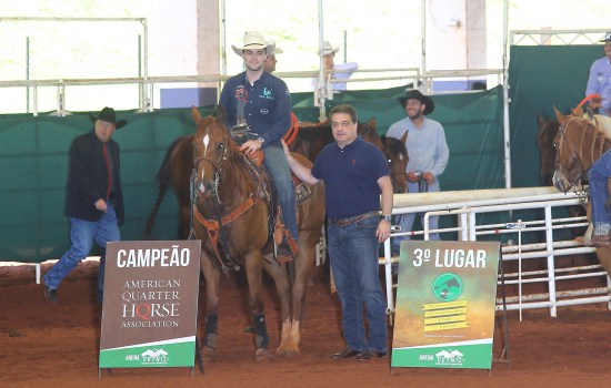 Laço Cabeça Potro do Futuro - Aberta - Livre (AQHA nota 74.000) GRETA LIGTHS (HIT THE LIGHTS X DESIGN GENE), com RAFAEL CORREA PAOLIELLO, proprietário WILLIAM ORSI FILHO e criador RICARDO P. BACKHEUSER JÚNIOR.