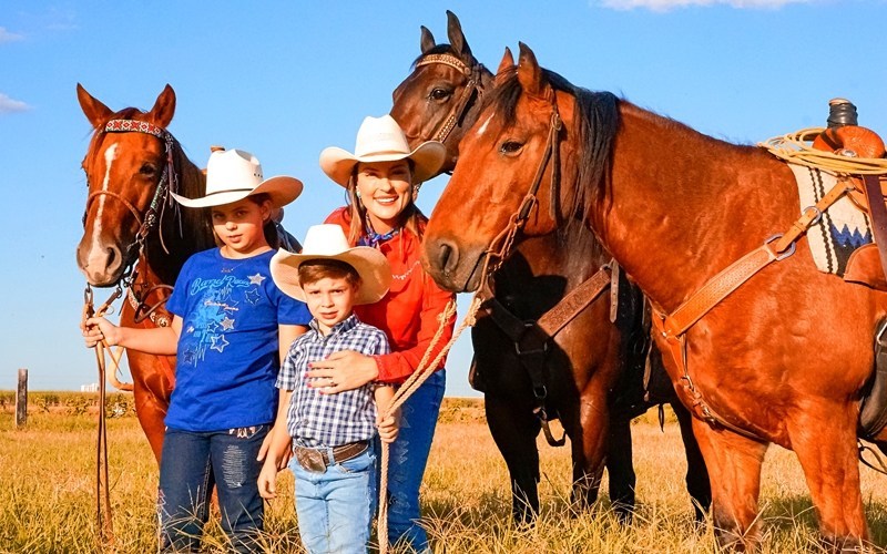 A paixão da médica veterinária e inspetora da Associação Brasileira de Criadores de Cavalo Quarto de Milha (ABQM), Camilla Ferreira, por cavalos começou ainda na infância, por influência do pai. Hoje, é ela quem também repassa o amor pela raça à nova geração da família.