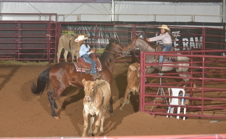 Nada como perceber o entrosamento de cavalo e cavaleiro nas divertidas provas de Ranch Sorting. Mas quando estão em pista as amazonas, elas não brincam em serviço. Os destaques da modalidade neste Nacional foram Maria Eduarda Alves Pimenta Gomes com JSA Suave Play e a pequena Maria Valentina Alves Lelis Gregório montando Dual Hickory Doc EK. Comandando suas montarias, ambos animais castrados, elas colocaram 10 bois no cercado em 33s281 competindo na Jovem Principiante.