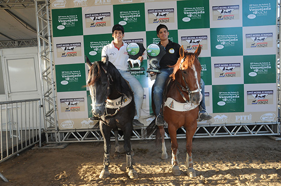 Michel Alves Cury com Duke Let WDB e Teodoro Passos O final de semana no Parque Haras Ivandro Cunha Lima, em Campina Grande (PB), foi de disputas emocionantes na faixa e de arquibancadas lotadas, gritando ?valeu boi?. O almejado título de Campeão Nacional ABQM de Vaquejada deixou a competição ainda mais acirrada. O campeonato da Associação Brasileira de Criadores de Cavalo Quarto de Milha (ABQM) reuniu vaqueiros de todo o país e pagou mais de R$ 230 mil em premiação.Na Classe Jovem, Michel Alves Cury, de Propriá (SE), venceu na sela de Duke Let WDB (Let Add x Samanta Galant WDB). O vaqueiro foi esteireiro por João Gabriel Cisneiros Cardoso, de Aracaju (SE), que montou Hickory High Brow JO (Hickory Fast DP x Summy Brow JO). ?É um título muito desejado pela vaqueirama. É sempre bom ser campeão?, comemorou o vaqueiro que tem apenas 15 anos de idade e três de treinamento. Michel dividiu o prêmio da Jovem com o vaqueiro Teodoro Passos.