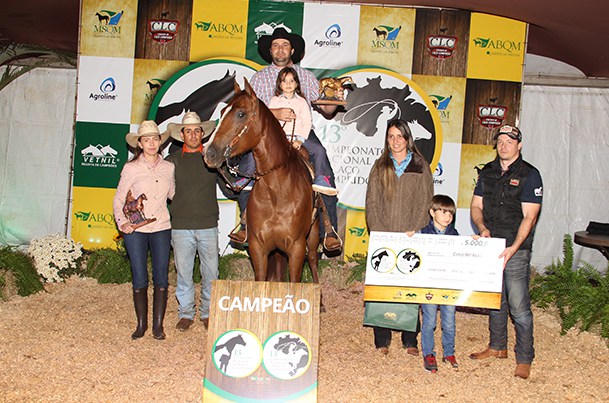 A catarinense, agora residente em Campo Grande, Renata Zucchetti Simonetto, se destacou este ano e especialmente nesse campeonato. No Boi Laçado, ela também subiu ao pódio, prêmio conquistado com Miss Lena Lilly, uma filha de PG Billy Gray e Miss Dual Lena (Ken Pep Playboy). Miss Lena é propriedade de Fernando Augusto de Araújo Nogueira e da criação de Luiz Armelin Júnior. Ela já foi top ten no Campeonato Nacional de Laço Comprido da Raça QM (2016) e vencedora em Campeonatos Estaduais da modalidade.