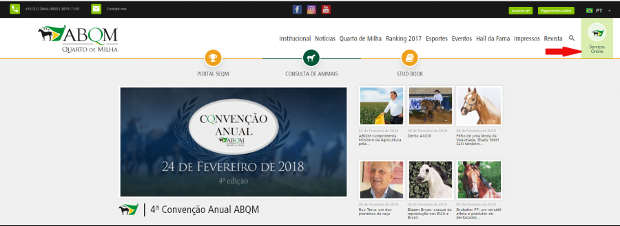 1) Acesse o nosso portal, no lado superior direito em "SERVIÇOS ONLINE";