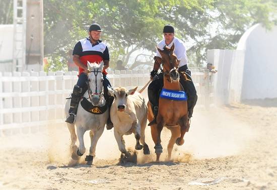 Adriano Borges de Medeiros com Príncipe Sugar Bars e Wagner Pignataro Lima com Kelly Keys Show Adriano reconhece que o esforço físico do puxador é maior, mas é categórico quando fala do desempenho de cada vaqueiro: ?a função do esteireiro é posicionar o boi para o puxador. Sempre deixando na posição para derrubá-lo dentro da faixa e fazer valer. Assim, os dois são muito importantes na pista e responsáveis pelo resultado. Todo o trabalho é executado em parceria?, destaca. A dupla teve 100% de aproveitamento, após sete rodadas. Emoção sem tamanho?A vitória é resultado de uma grande amizade com Wagner, que vem de infância, também de preparação e afinidade com o animal. Treinamos muito e hoje sentimos uma emoção que não tem tamanho, só Deus sabe a dimensão dela. Esse é o maior campeonato do país, com os maiores vaqueiros e os cavalos das melhores linhagens do Brasil. É uma Vaquejada modelo?, conta o puxador que conhece as pistas de Vaquejada desde os cinco anos de idade.