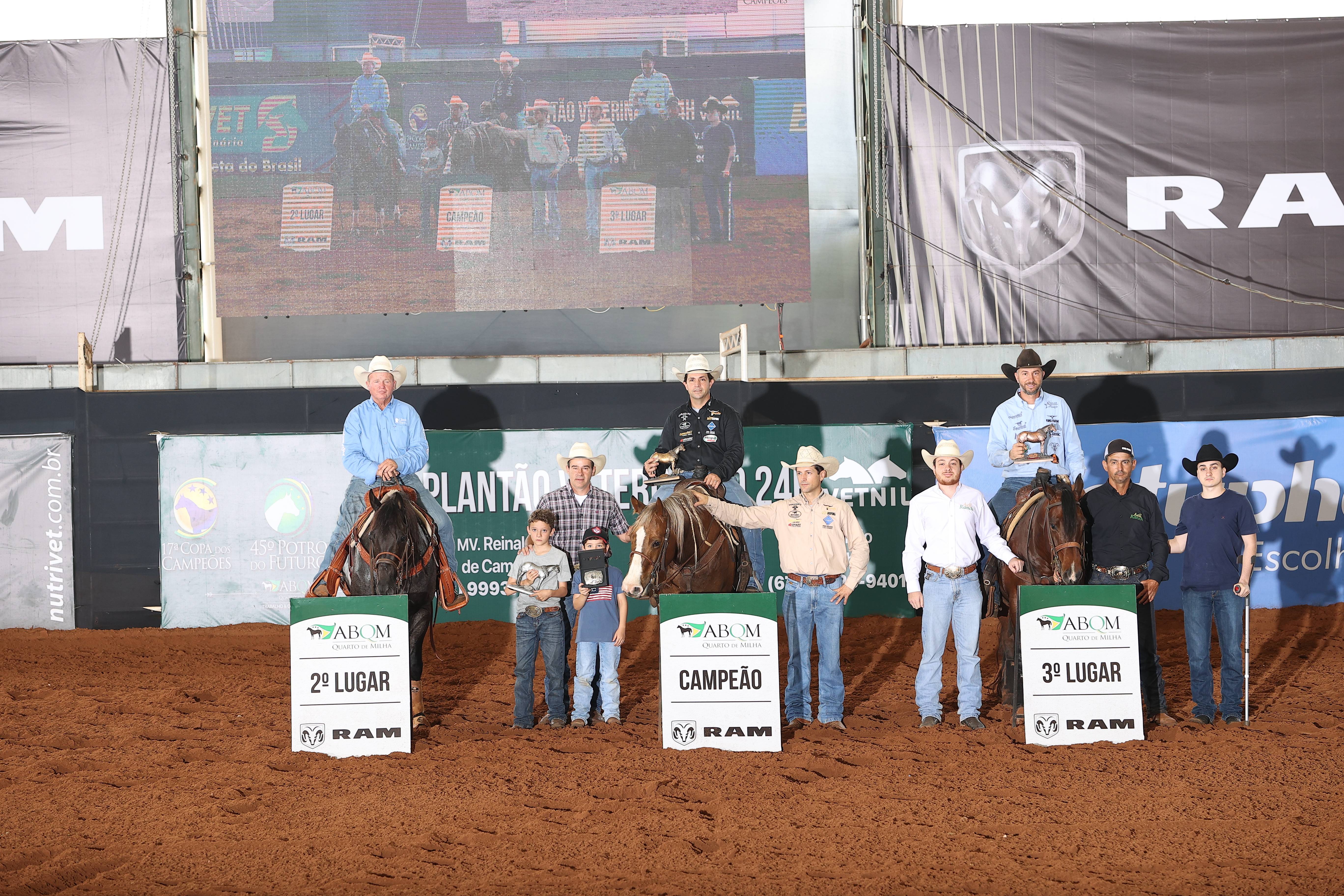 E pela 17ª Copa dos Campeões, foram 198 inscritos que estiveram nessa disputa. E, mais uma vez, Rafael Correa Paoliello fez a maior nota da modalidade. Em conjunto formado Shinning Candy MA (Shinning Beaver MA x Miss Candy Badger MA), o treinador alcançou 231 de nota pela categoria Aberta Castrado.