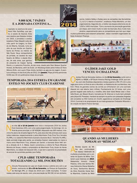 Acompanhe um resumo dos principais eventos esportivos que movimentaram a raça em 2014. Estas matérias foram publicadas na Revista Quarto de Milha - Ed. 214.