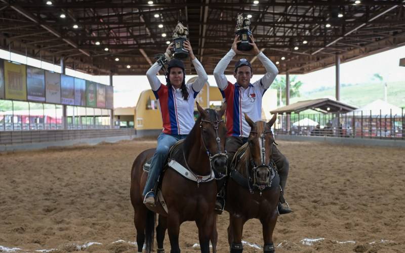 O casal Karla Maria Coelho Sampaio e Eduardo Serafim de Oliva venceu o Campeonato Nacional de Vaquejada da ABQM, na categoria Aberta Feminino e comemorou duas vezes. A puxadora agradeceu a Deus, ao marido, ao filho, parentes, funcionários e amigos pela conquista. “Quero firmar para todos que a gente não chegar a lugar algum sozinho, por isso agradeço à família junta, com o mesmo objetivo”, emocionou-se a vaqueira, que montou o animal Sensação Apollo Jiggs.
