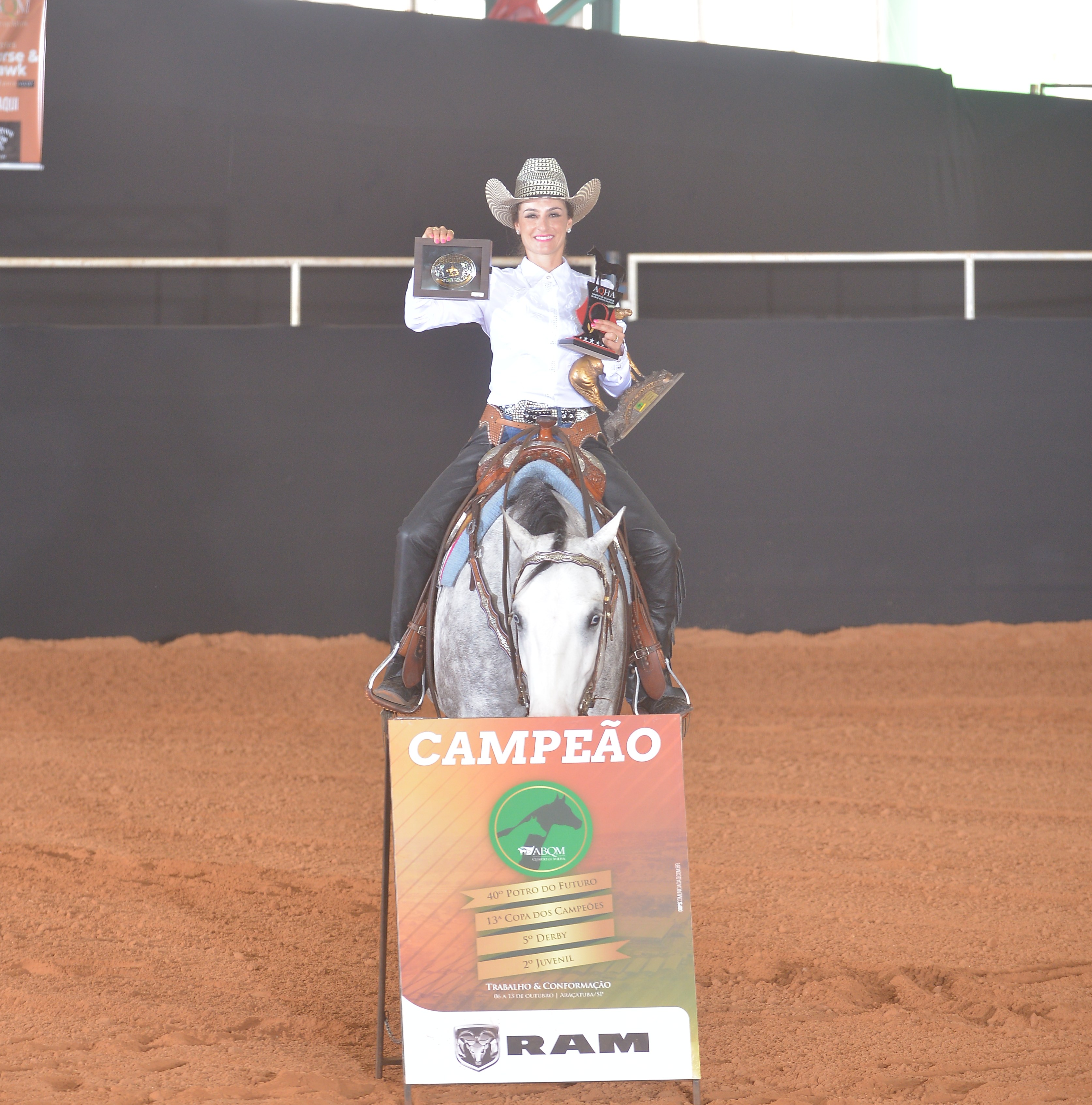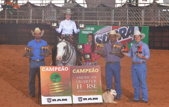Pela categoria Amador Master da ABQM, o competidor Fernando Macarron Pereira comandou à campeã Holly Badger Dun QR (Country Dun It x Iowa Hickory Jamb), de sua propriedade. Animal de criação de Abelardo Ferreira Mendes.