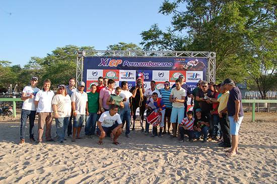 Promotores do evento e o jóquei F. Nascimento ?Destacamos a participação do Rancho Horizonte que, como coproprietário, ficou com o primeiro e segundo lugares na grande final e de forma isolada ainda levou a prova de consolação. Os promotores do XI GP Pernambucano, Paulo Otávio (Haras Monte Verde), Guy Peixoto (Rancho Horizonte), e Dr. Omena e José Josivaldo-Boy (Stud JSS), ficaram muito satisfeitos com mais este evento no Hipódromo Santa Fé, principalmente com as delegações visitantes, para as quais fazem agradecimento especial. Toda a equipe já está trabalhando para o II GP e Leilão Velocidade Nordeste a ser realizado de 20 a 22 de maio de 2016?, expos Júnior Medeiros da Apoio Rural Assessoria & Genealogia. Data da publicação: 07/12/2015